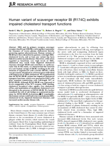 Human variant of scavenger receptor BI (R174C) exhibits impaired cholesterol transport functions